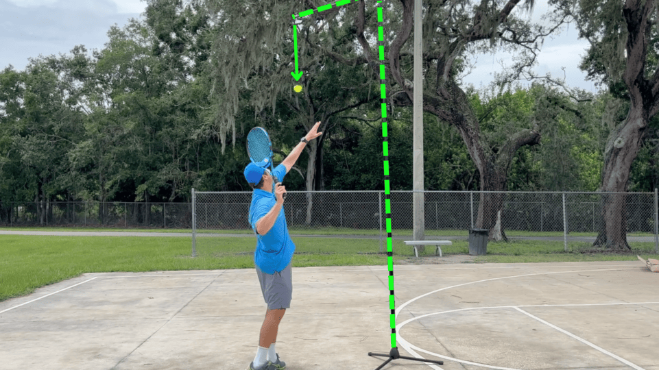 If your toss is inconsistent, focus on a straight lift from the shoulder with no spin or wrist action.The Serve Stand acts as your toss target, it represents your contact point and shows you whether you’re releasing too early or too late.