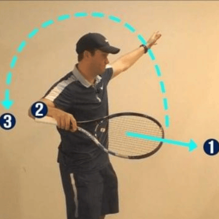 From the half-serve position, focus on bending the elbow with the palm down so the racket passes between the ear and the elbow — this gives you that “cobra” position. The Serve Stand allows you to repeat this slowly and get into those positions without rushing.